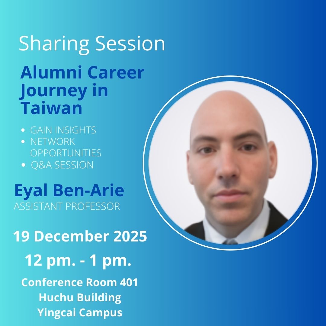 Professor Eyal will share insights from his educational and professional journey in Taiwan.