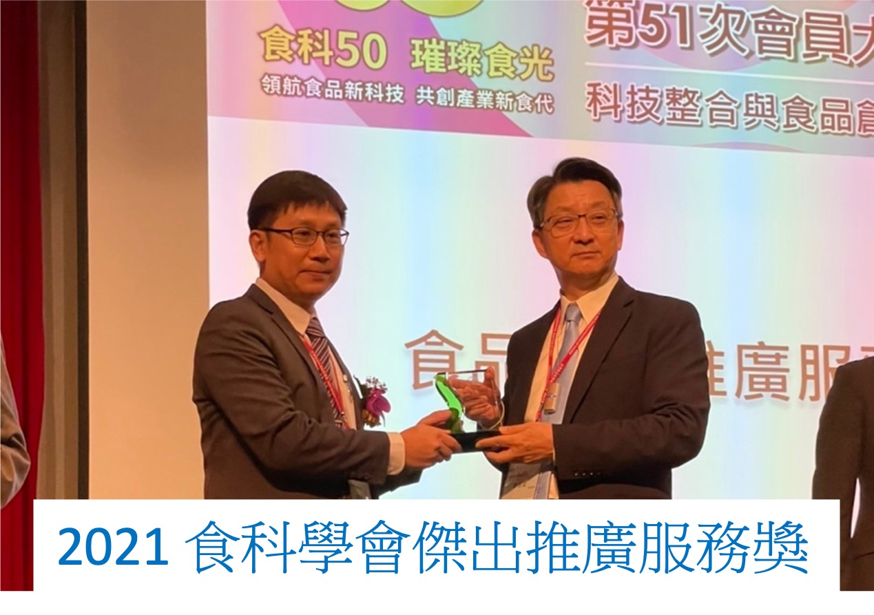 - 台灣食品科學技術學會食品傑出推廣服務人員獎