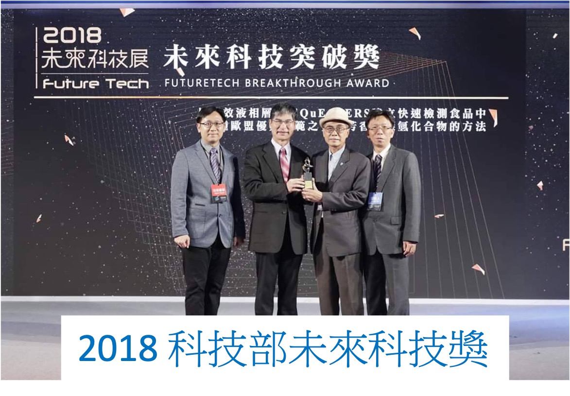 - 科技部未來科技突破獎「以高效液相層析和QuEChERS建立快速檢測食品中16種歐盟優先規範之多環芳香族碳氫化合物的方法」--江舟峰、楊登傑、徐國強