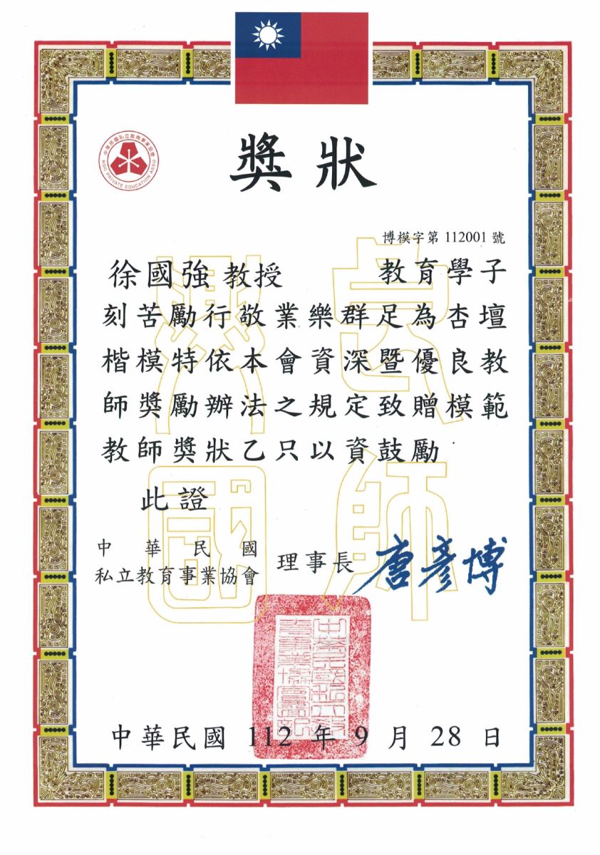- 中華民國私立教育事業協會模範教師