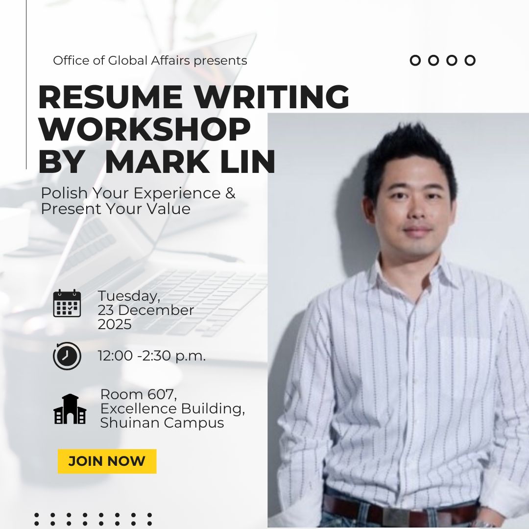 | 活動內容: | You are invited to participate in the Resume Writing Workshop, where you will learn how to structure and write a clear, professional, and effective resume, with hands-on practice and practical guidance. |